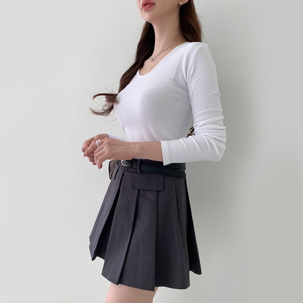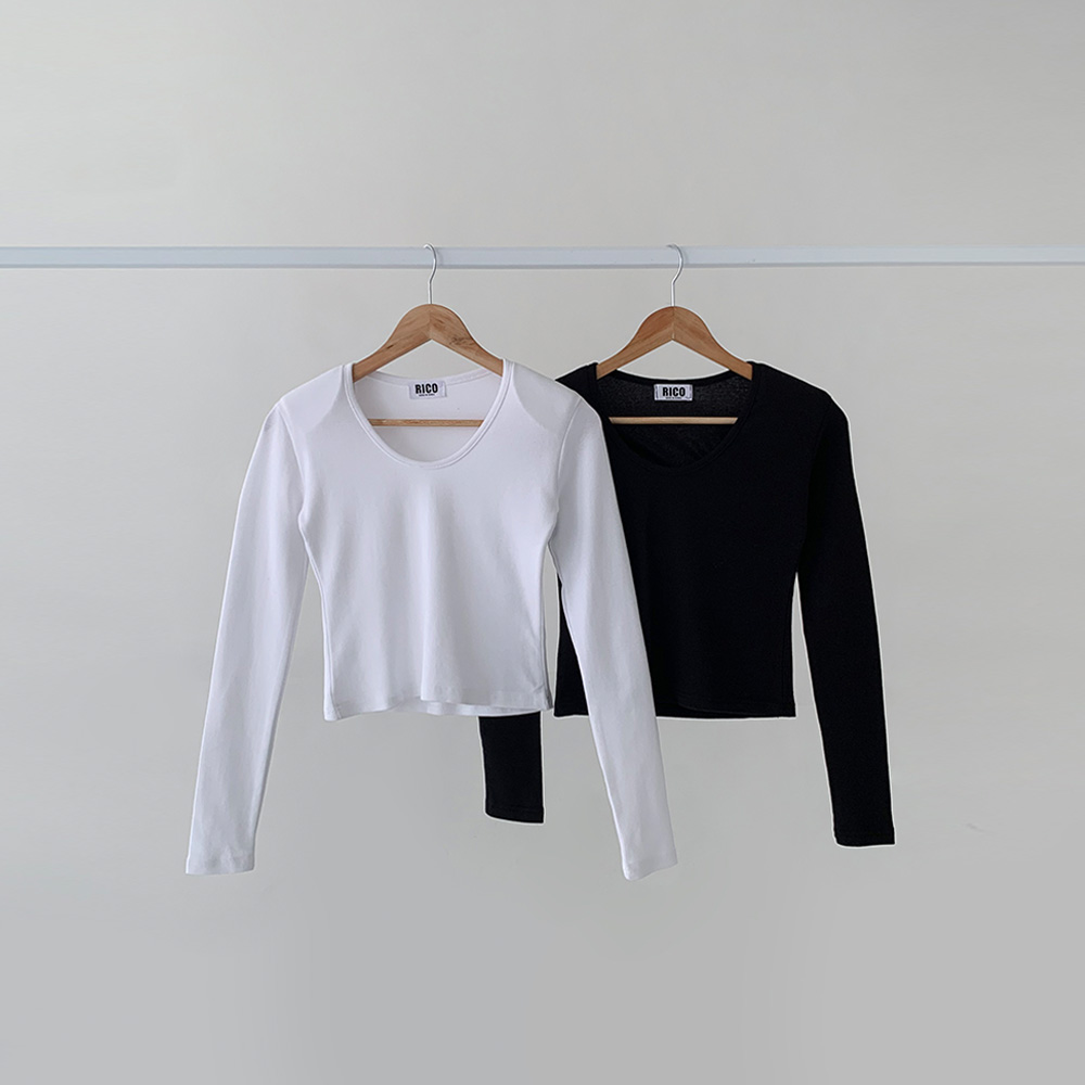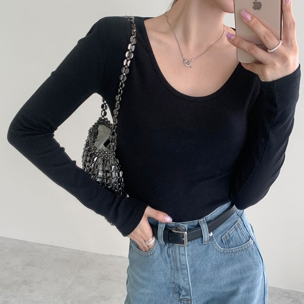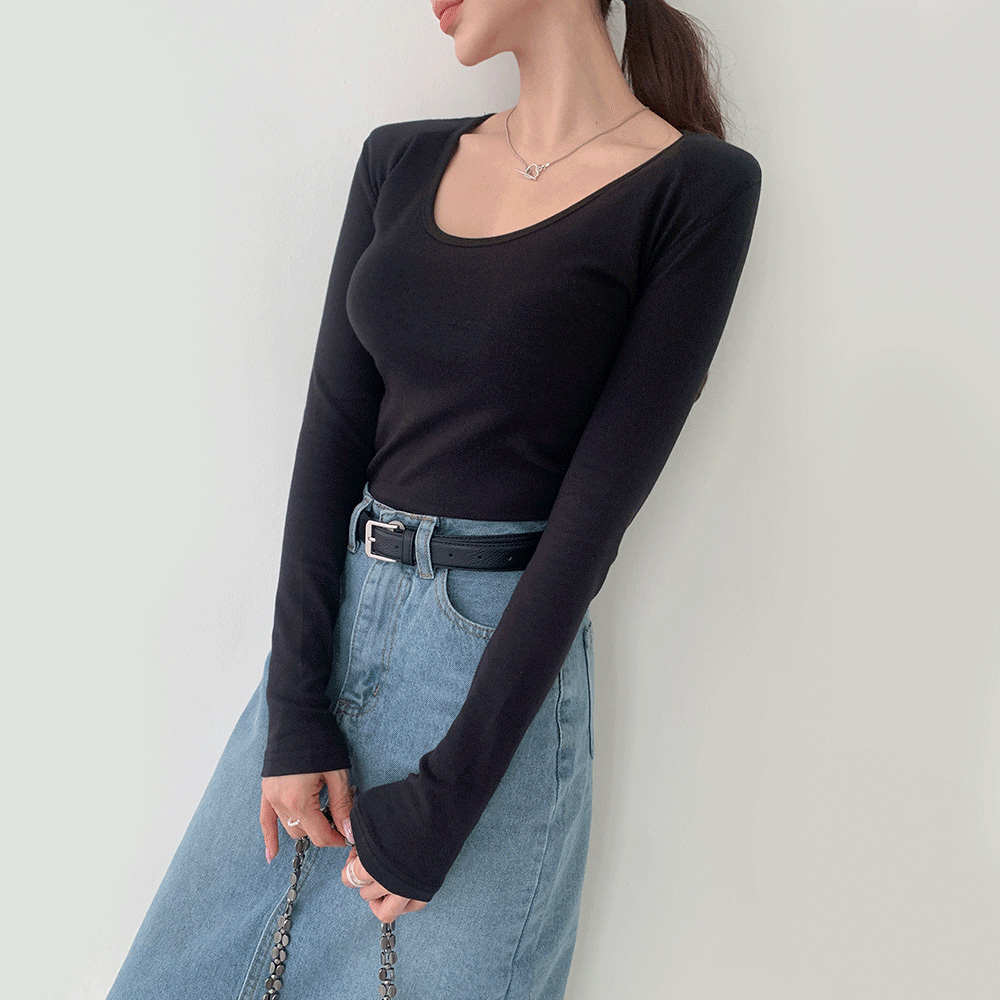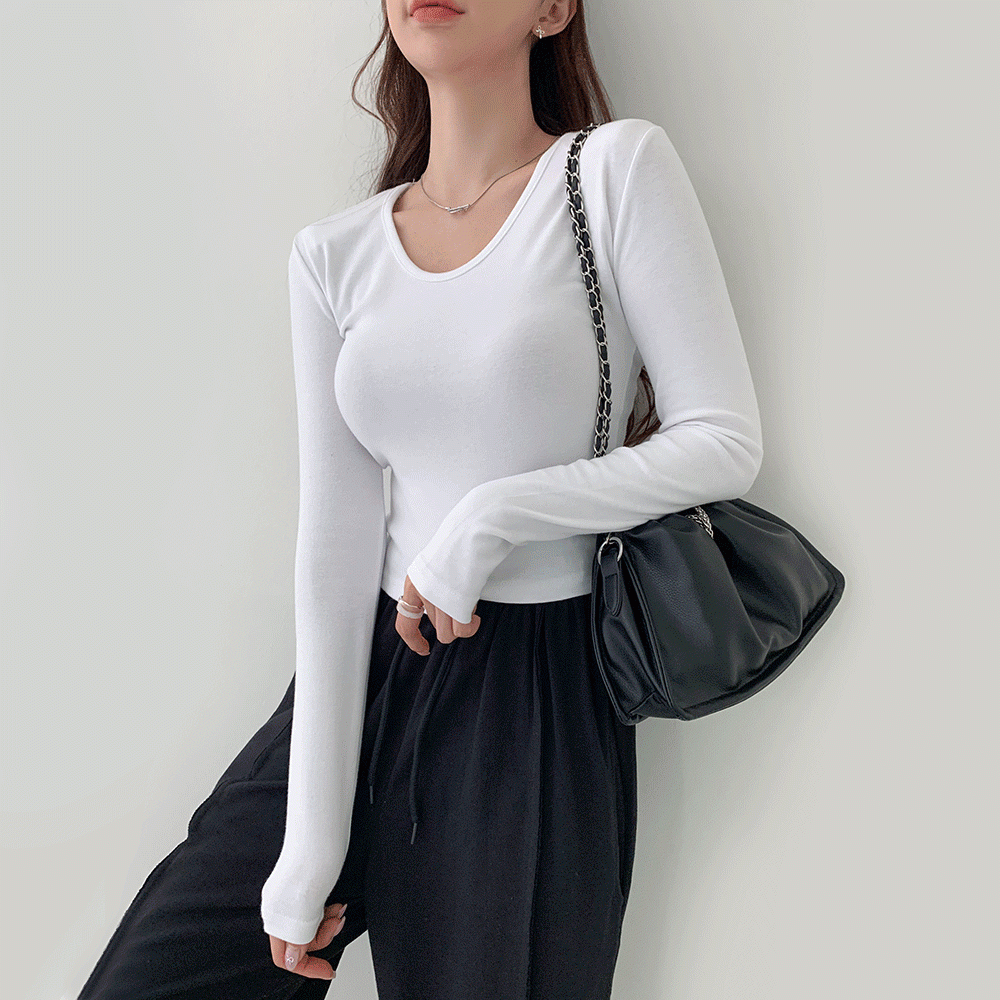 긴팔 무지 유넥 티셔츠 모달 봄 가을 얇은 티 세미크롭 어깨패드