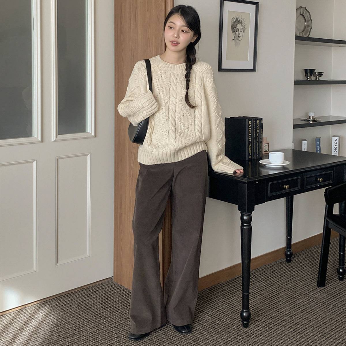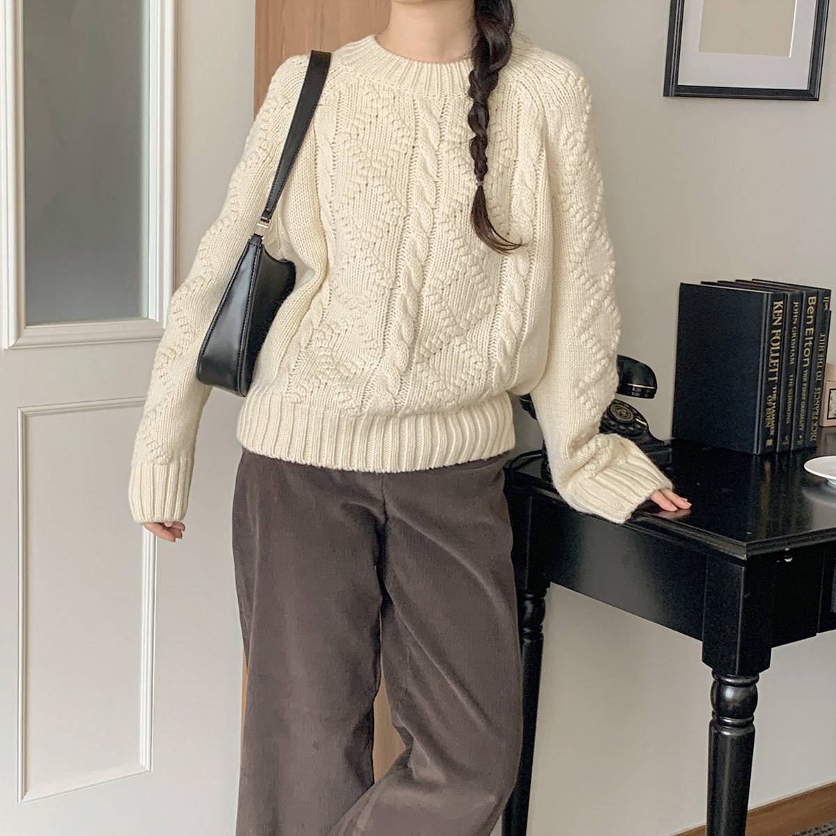 꽈배기패턴 오버핏 여리여리 도톰 포근한 라운드넥 페미닌 캐쥬얼 러블리 니트 데일리