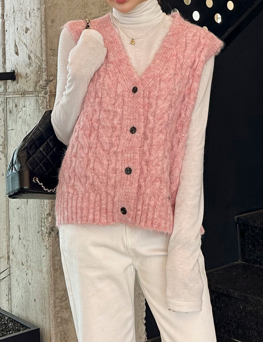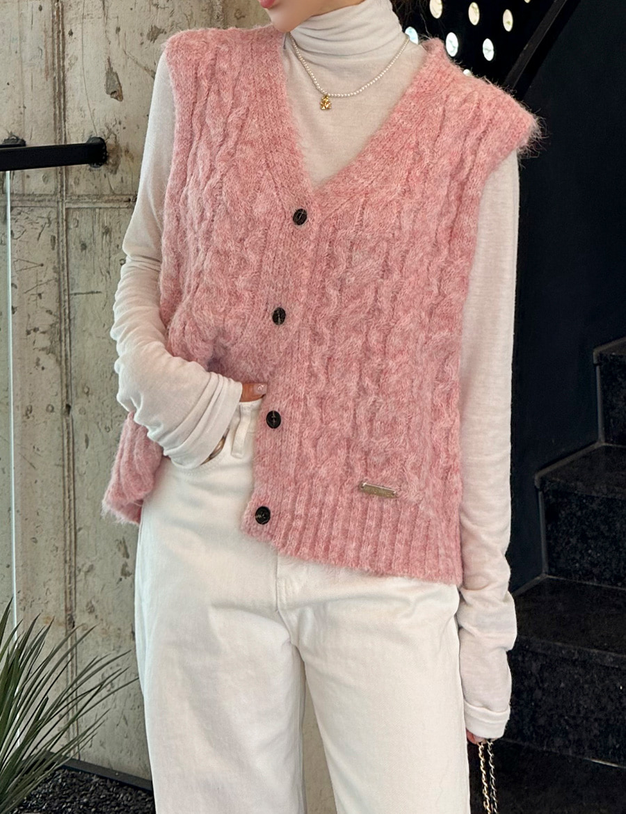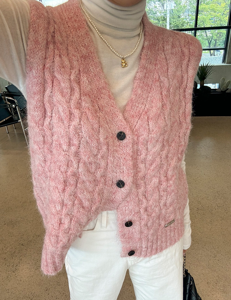 니트 베스트 조끼 레이어드 브이넥 베이지 그레이 핑크 소라 봄 가을