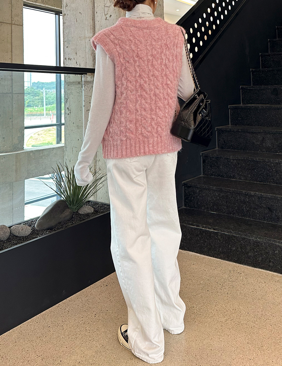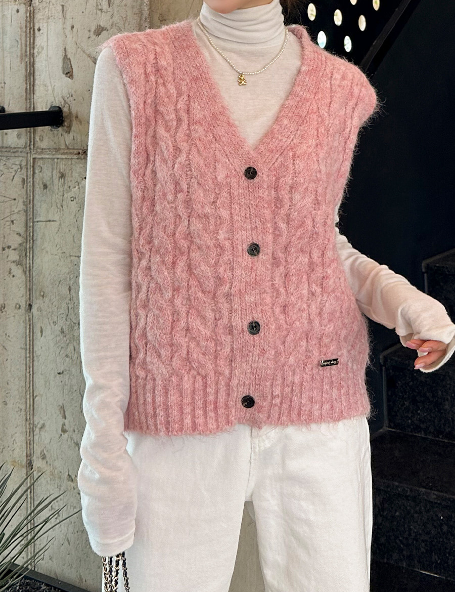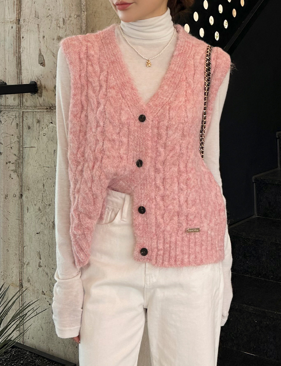 니트 베스트 조끼 레이어드 브이넥 베이지 그레이 핑크 소라 봄 가을
