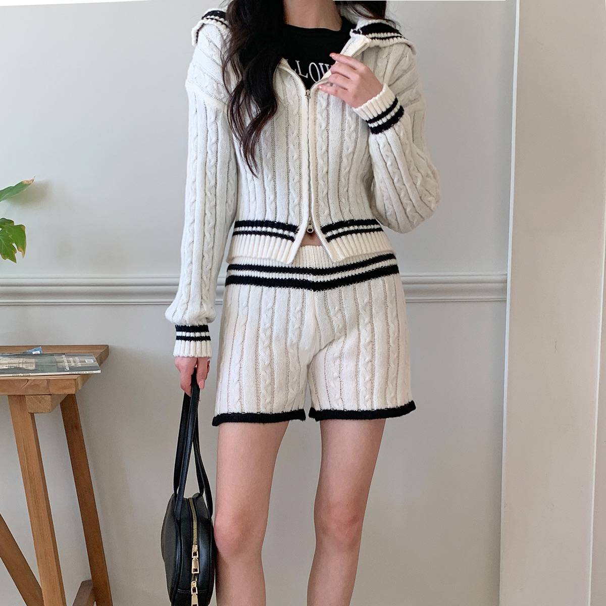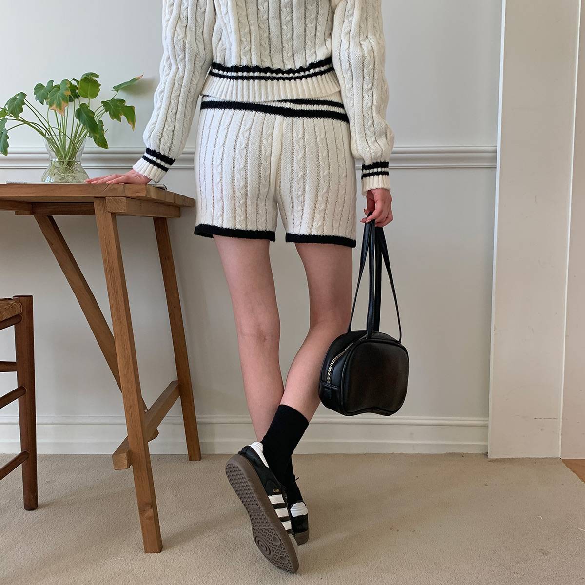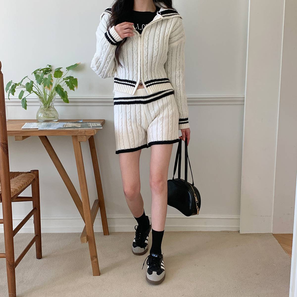 니트 카라넥 꽈배기 투웨이 집업 점퍼 팬츠 세트 투피스 셋업 화이트 베이지 블랙