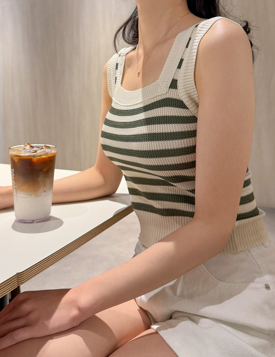 스퀘어넥 라인에 슬리브리스 디자인으로