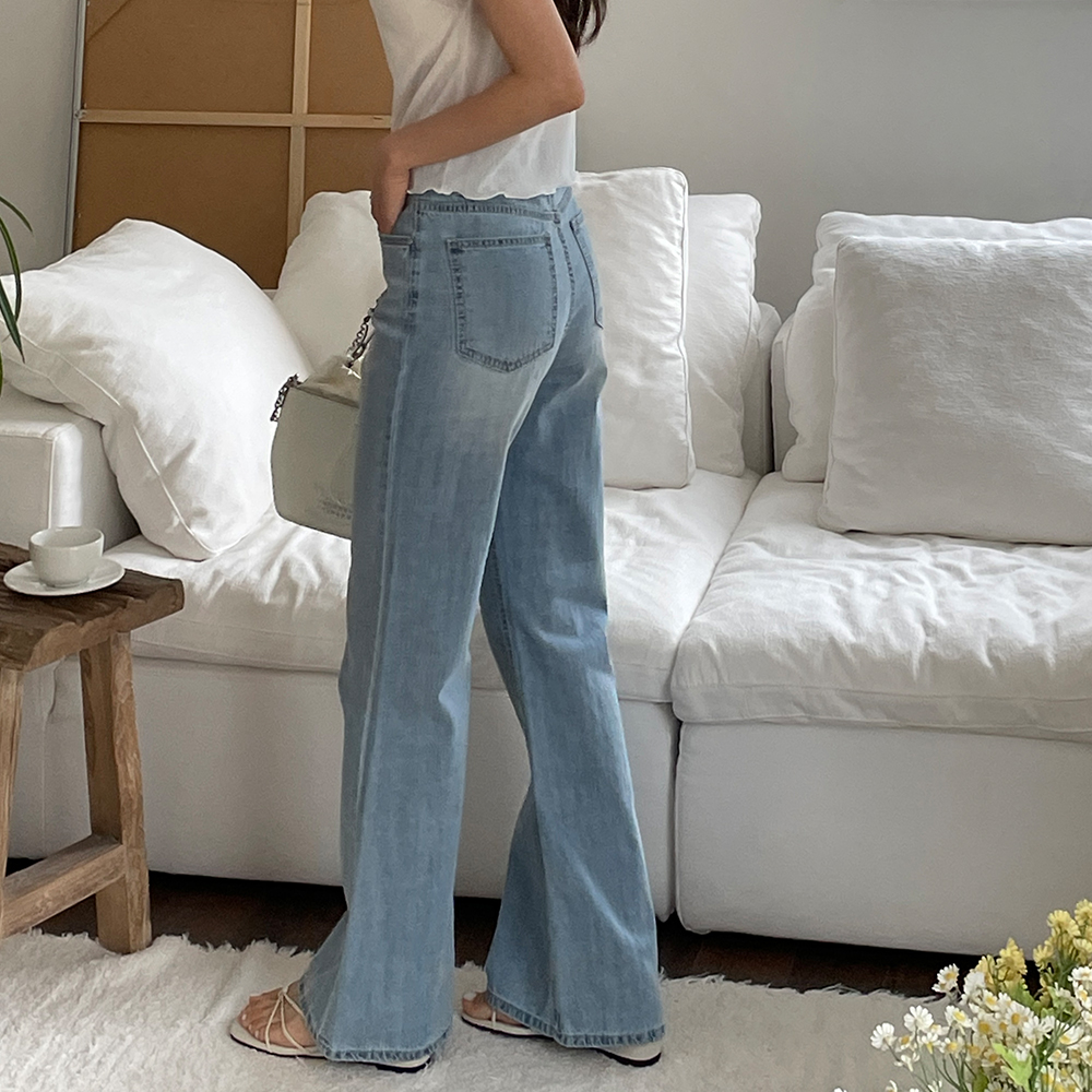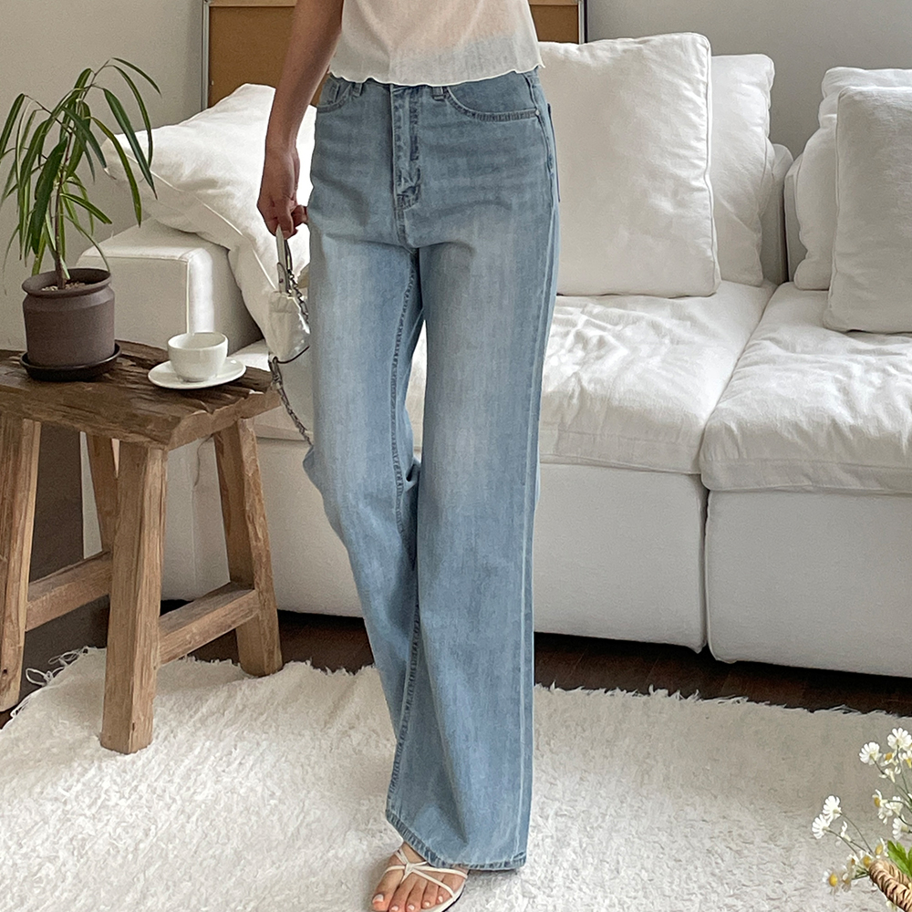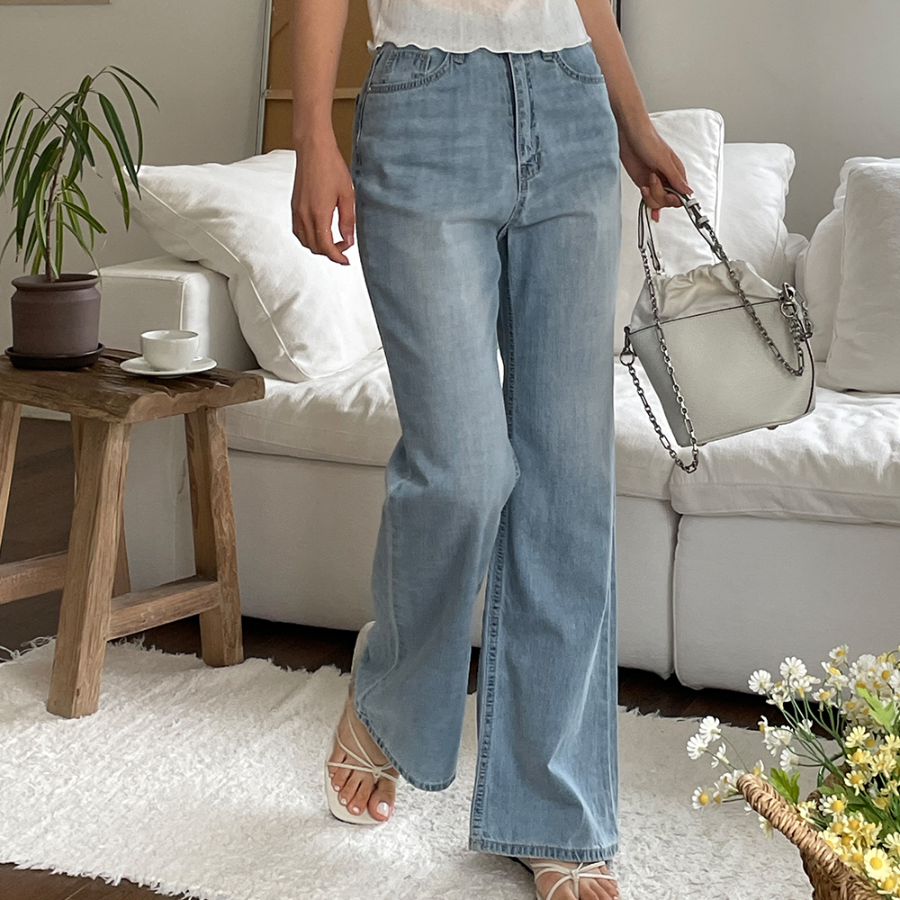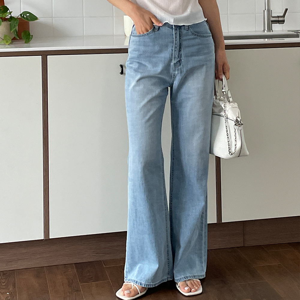 데님 부츠컷 여름 여자 여성 연 와이드 청바지 팬츠 세미 청바지 빅사이즈
