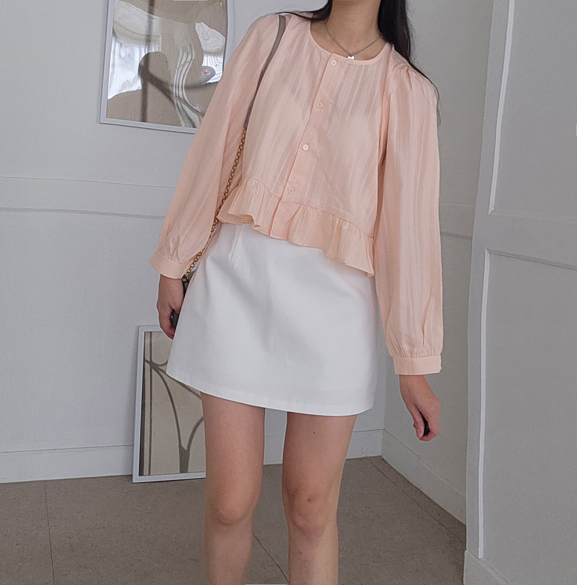 라운드넥 + 하단프릴로 러블리한 블라우스