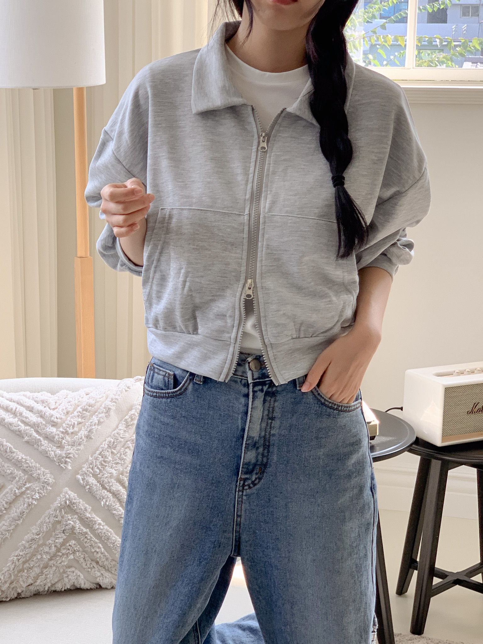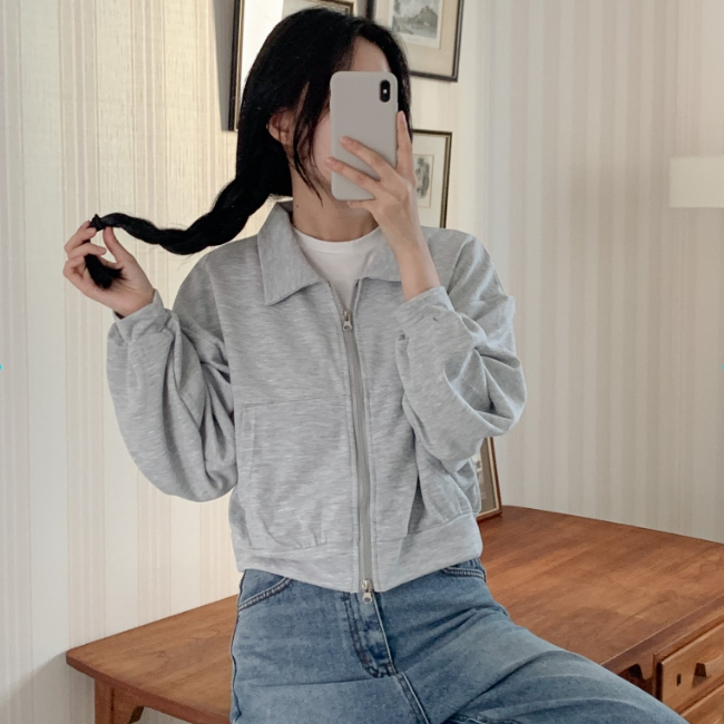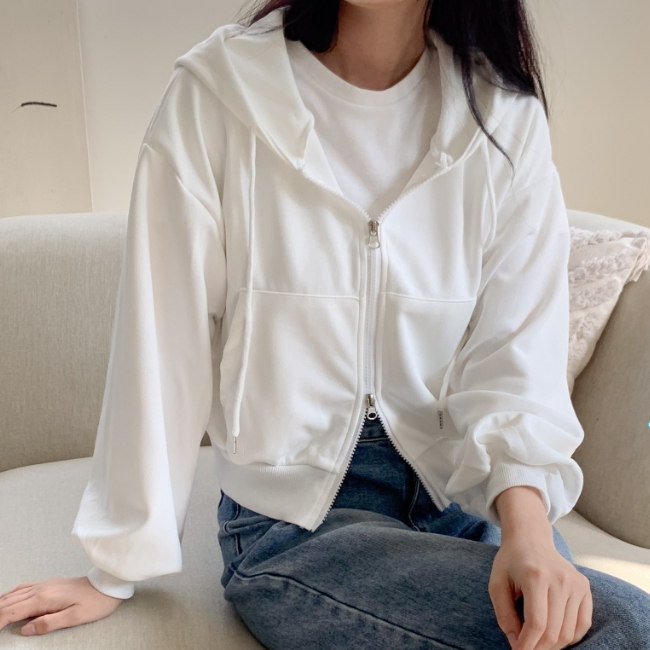 무지 베이직 긴팔 투웨이 집업 점퍼 자켓 잠바 데일리 크롭 후드