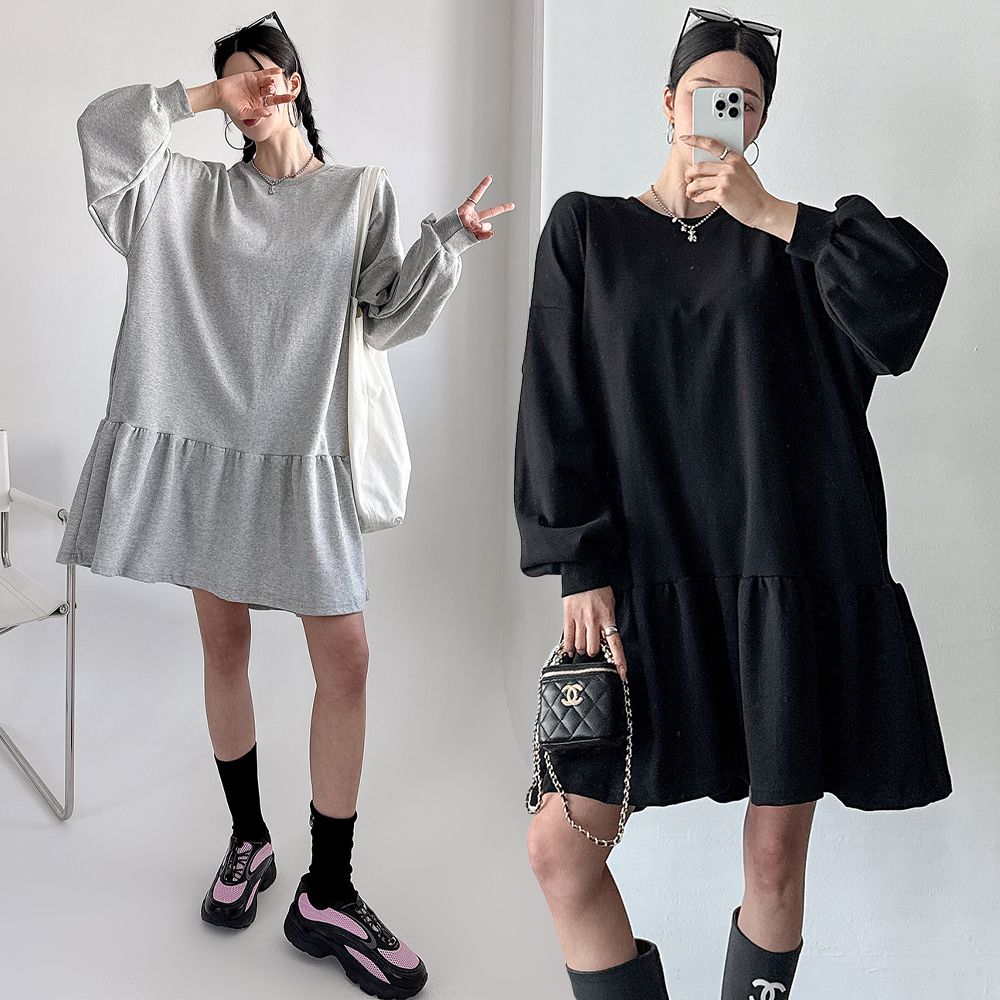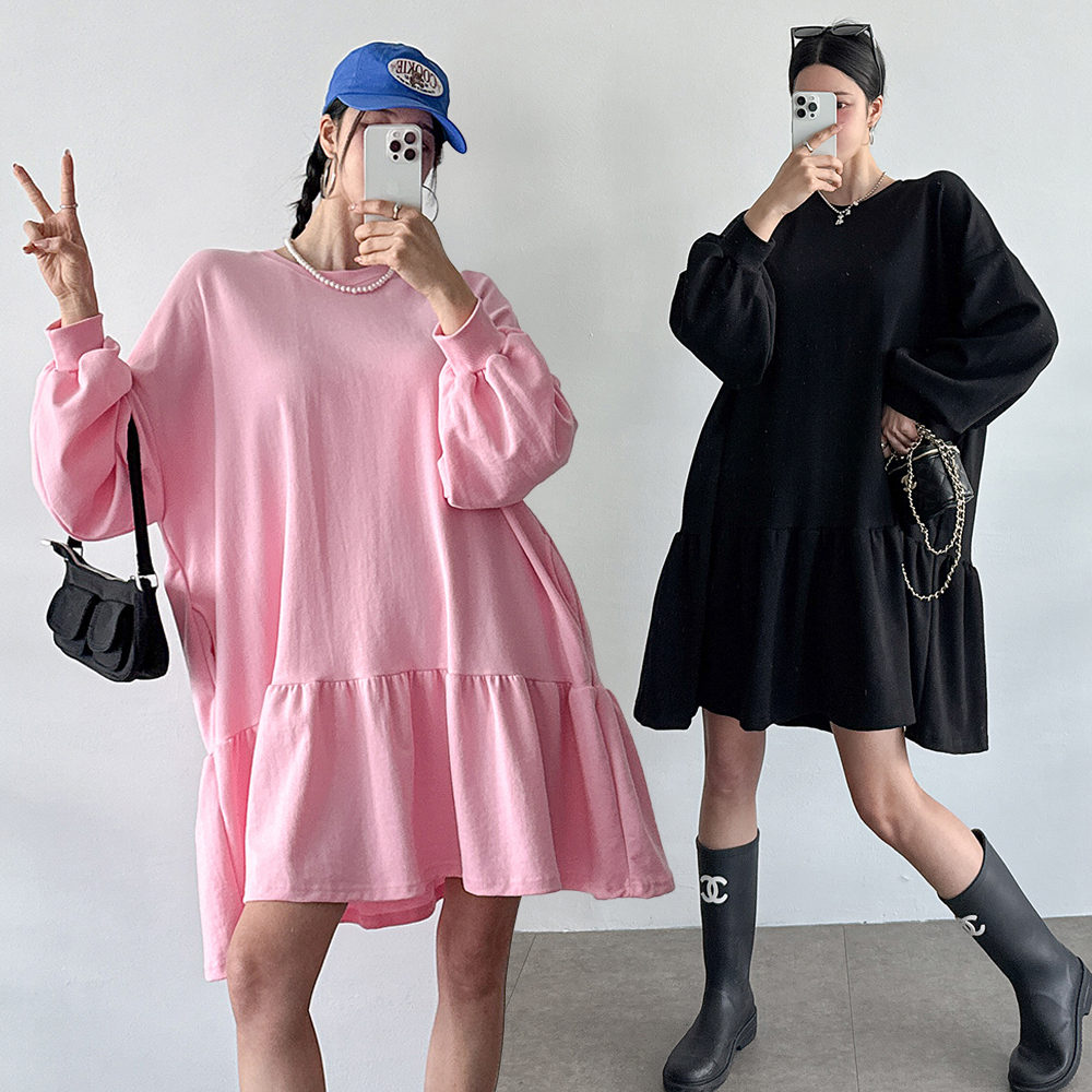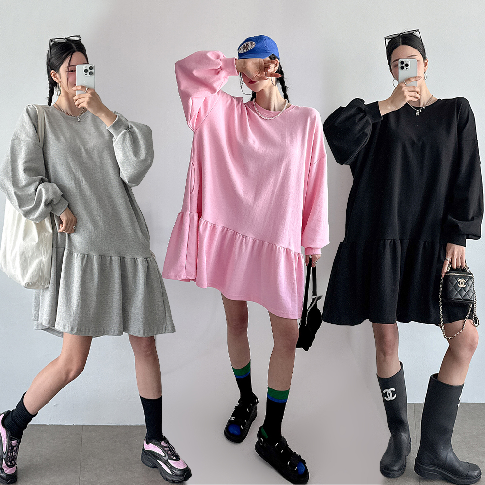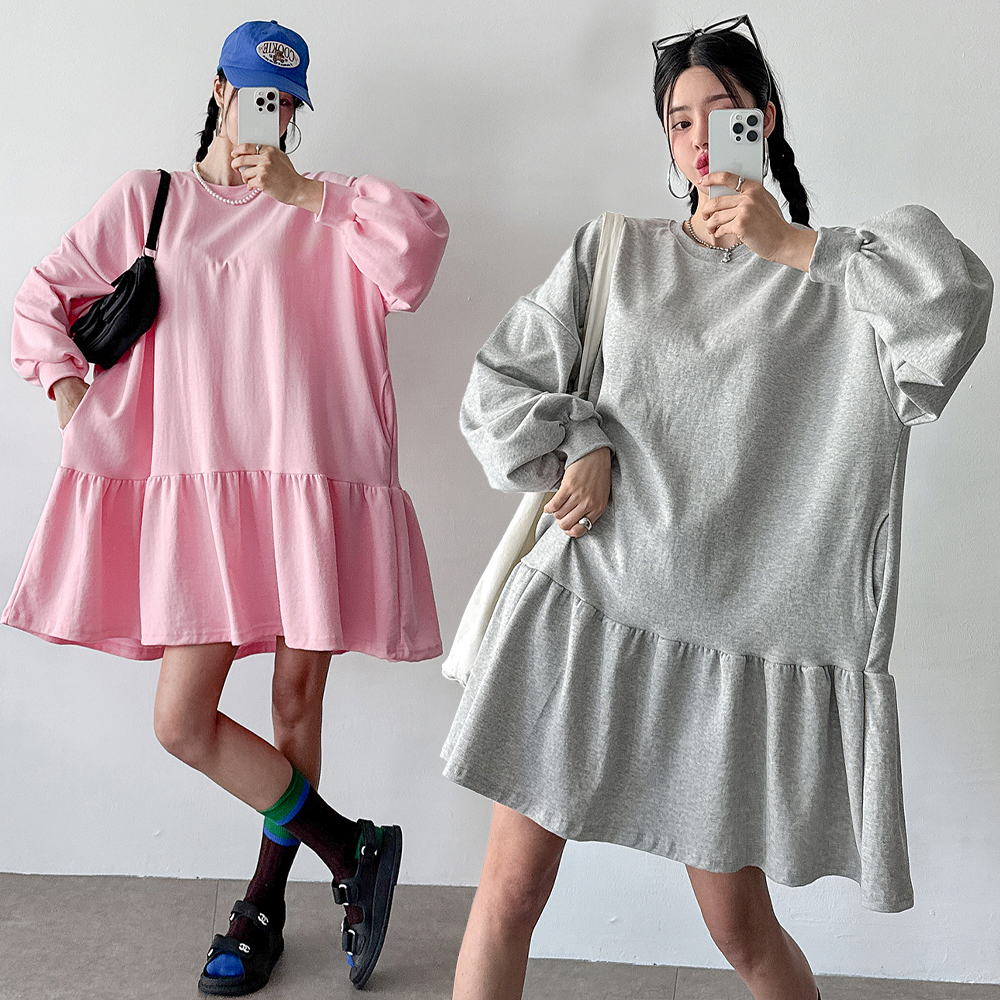 빅사이즈 맨투맨 긴팔 미니 플레어 원피스 임산부 임부복 루즈핏 오버핏 봄 가을 플리츠 88