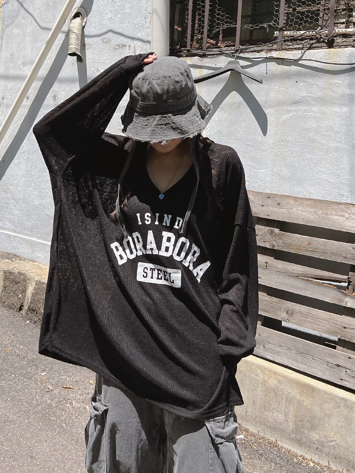 빅사이즈 오버핏 얇은 긴팔 니트 롱 티셔츠 루즈핏 임산부 임부복 박시핏 박스티 시스루 나염