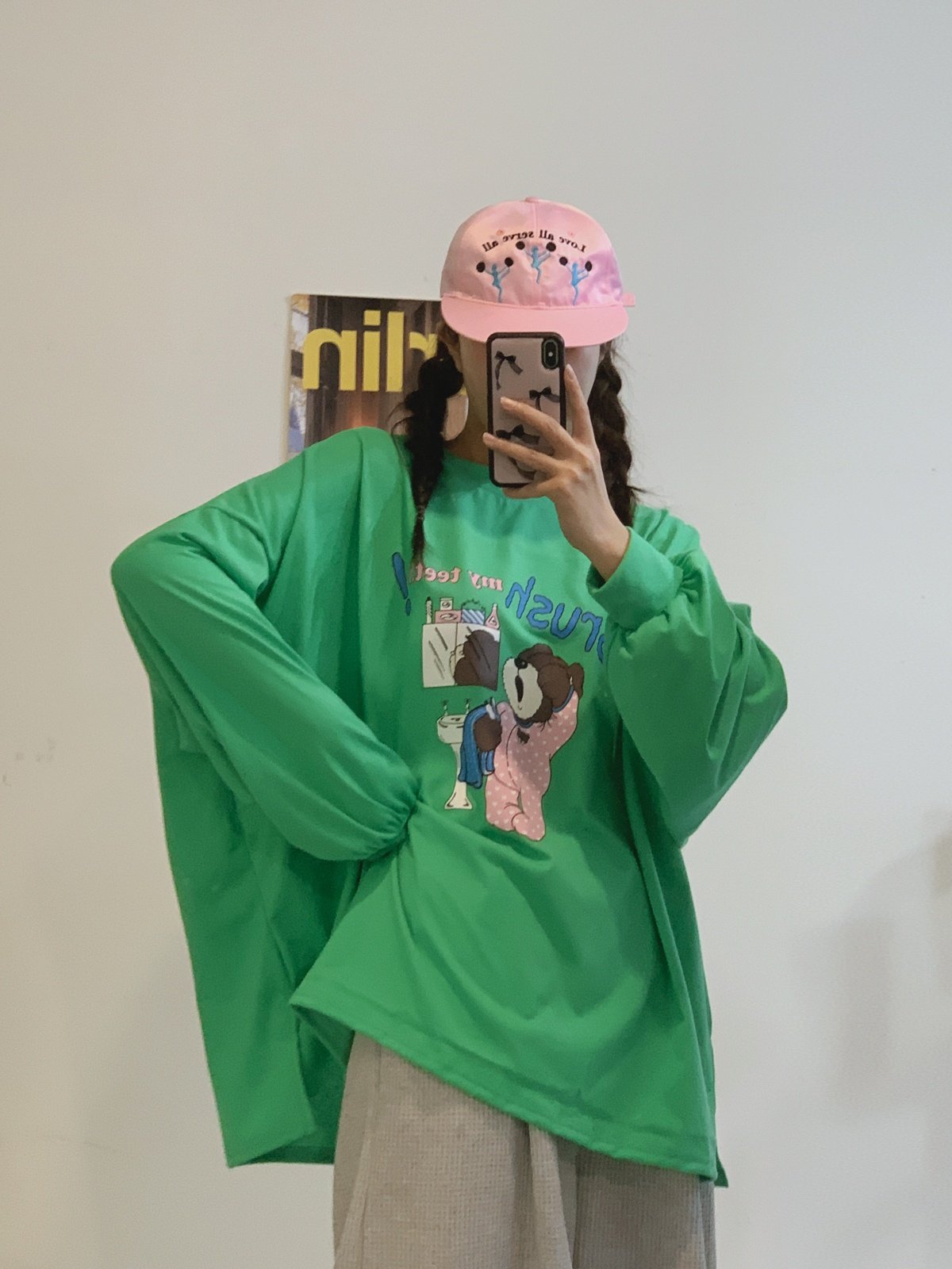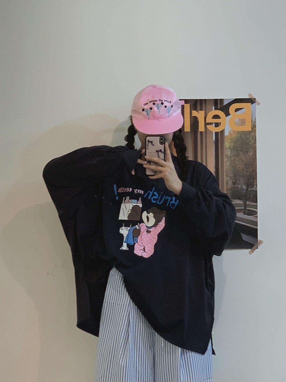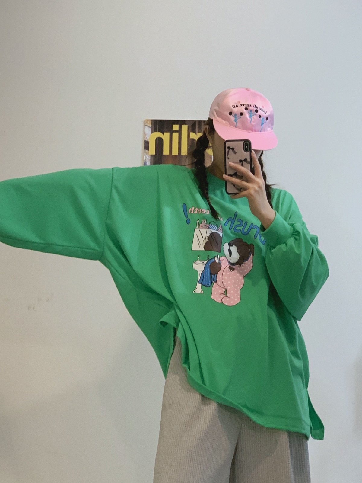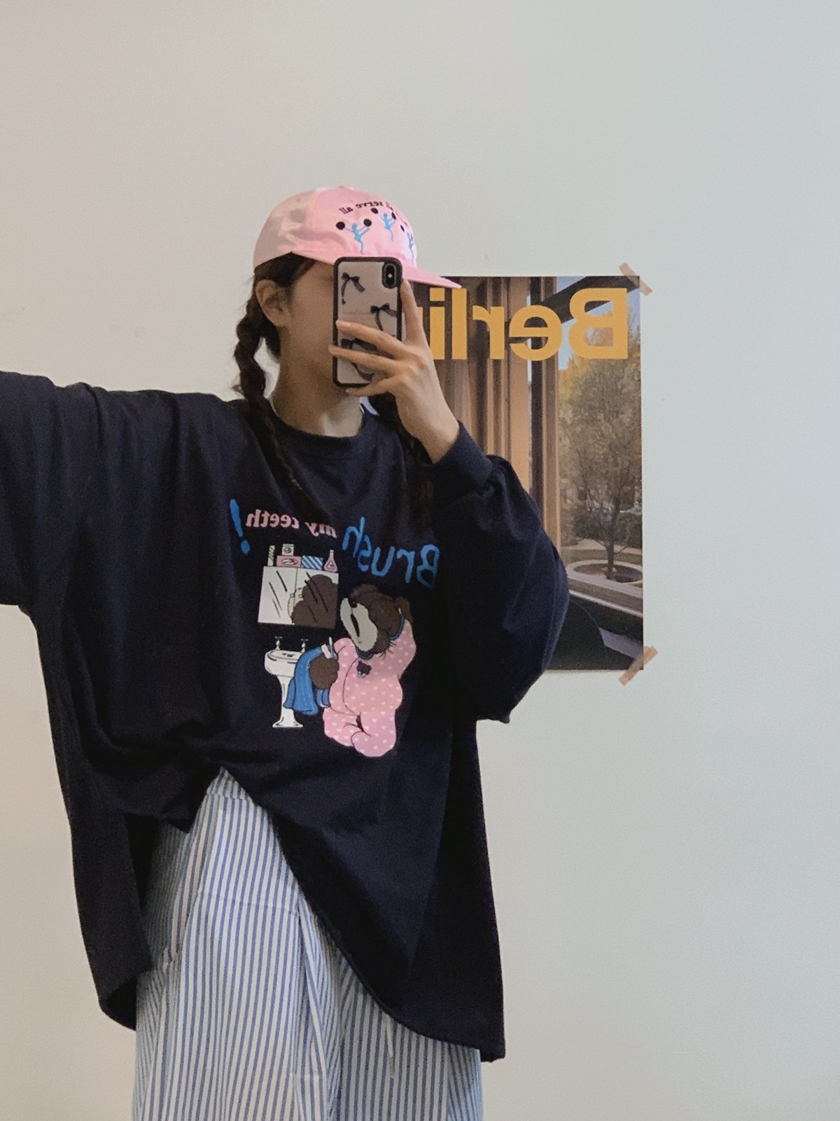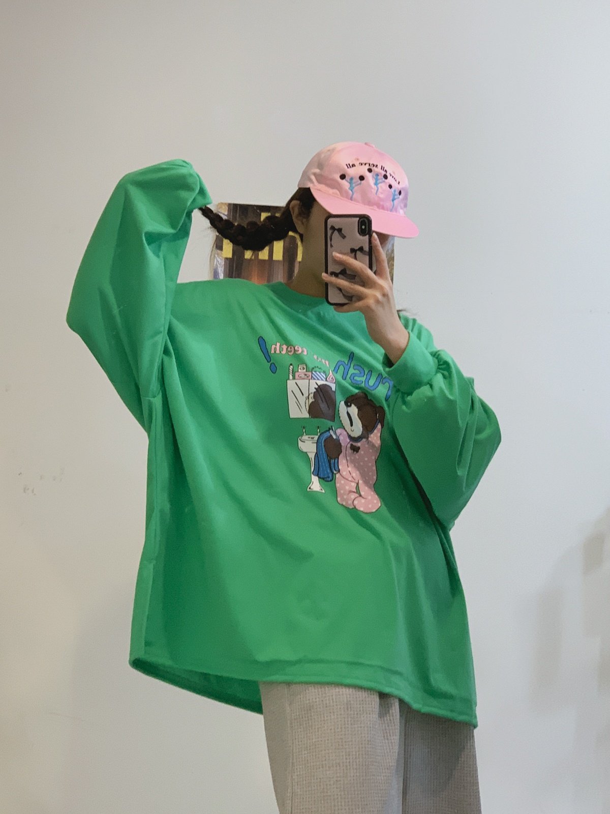 빅사이즈 오버핏 캐릭터 긴팔 롱 티셔츠 루즈핏 임산부 임부복 박시핏 박스티 힙커버 맨투맨