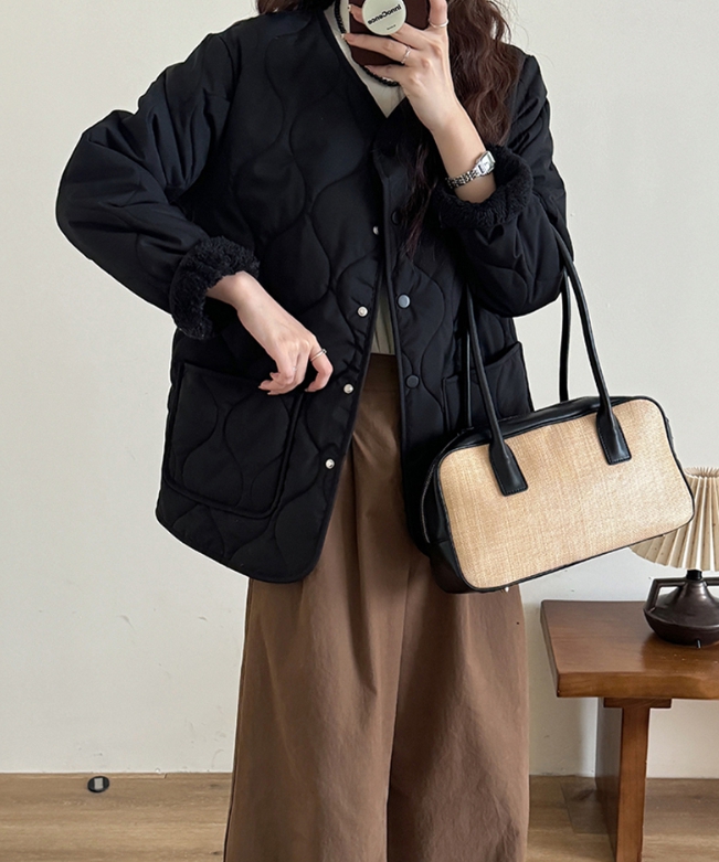 오버핏 퀼팅 누빔 패딩 점퍼 자켓 경량 양털 뽀글이 빅사이즈 깔깔이 루즈핏 겨울 후리스