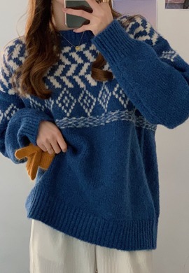 #루즈핏니트 #다이아몬드패턴니트 #빈티지감성스웨터