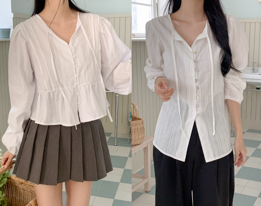 타이 스트랩 긴팔 브이넥 블라우스는 봄과 가을에 완벽한 하객룩과 데일리 스타일링을 위한 필수 아이템입니다. 고급스러운 자개 버튼과 손목 부위의 밴딩 처리로 편안함과 세련됨을 동시에 제공합니다. 숏 버전은 다리를 길어 보이게 하고, 롱 버전은 날씬한 허리 라인을 강조하여 여성스러움을 더합니다. 다양한 색상으로 어떤 스타일에도 잘 어울리며, 청바지와 캐주얼하게 매치하거나 A라인 스커트와 함께 우아한 하객룩으로 연출할 수 있습니다. 이 블라우스는 당신의 패션 센스를 한층 높여줄 완벽한 선택입니다!