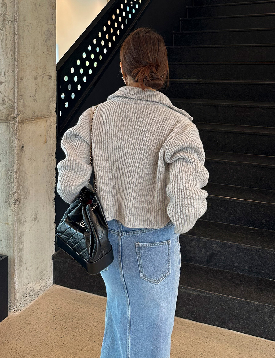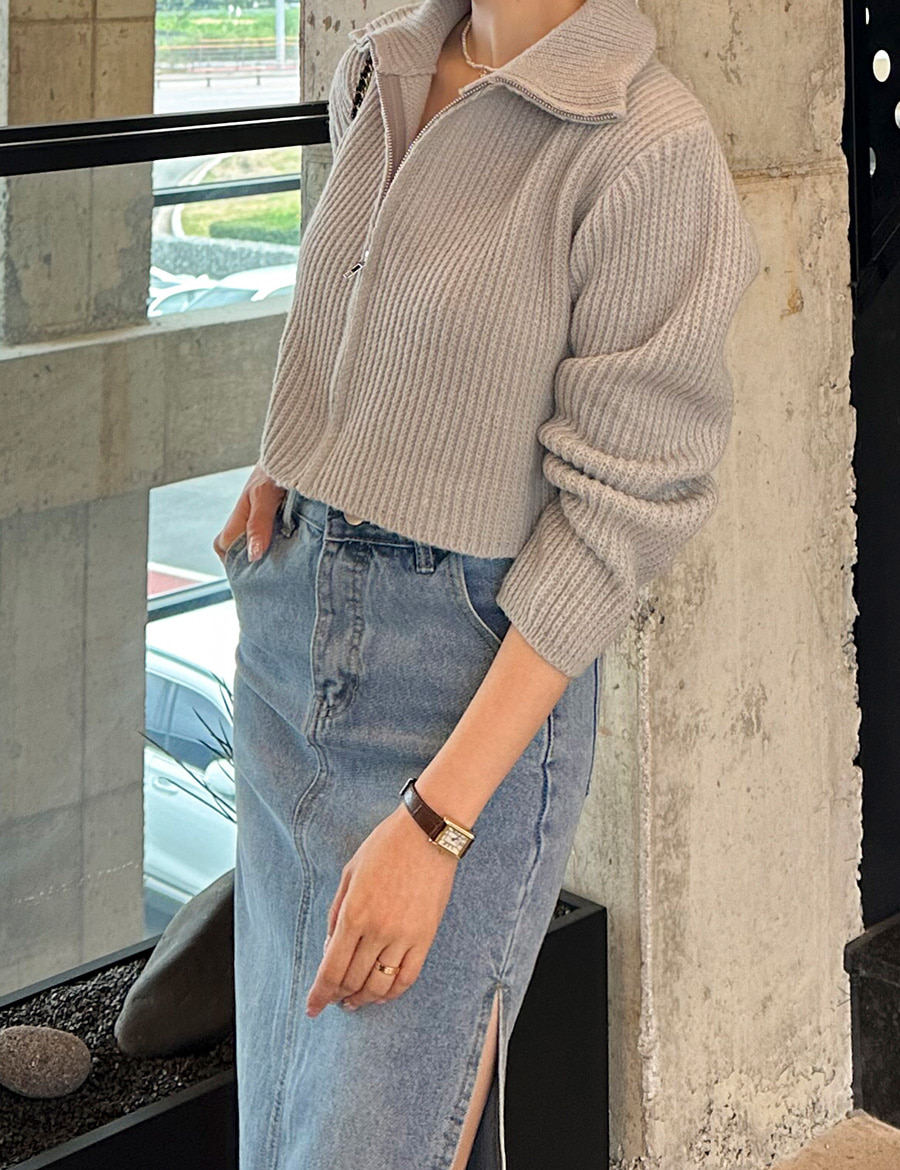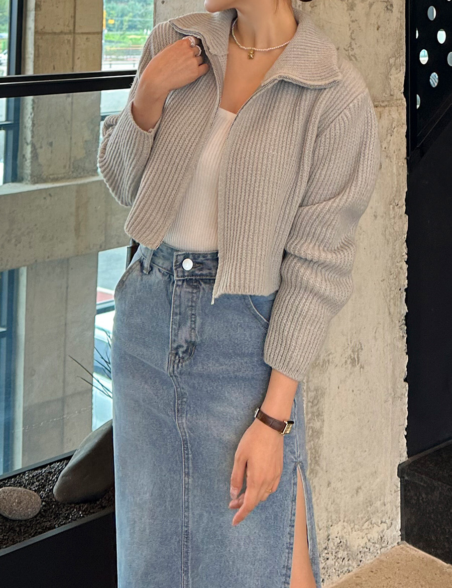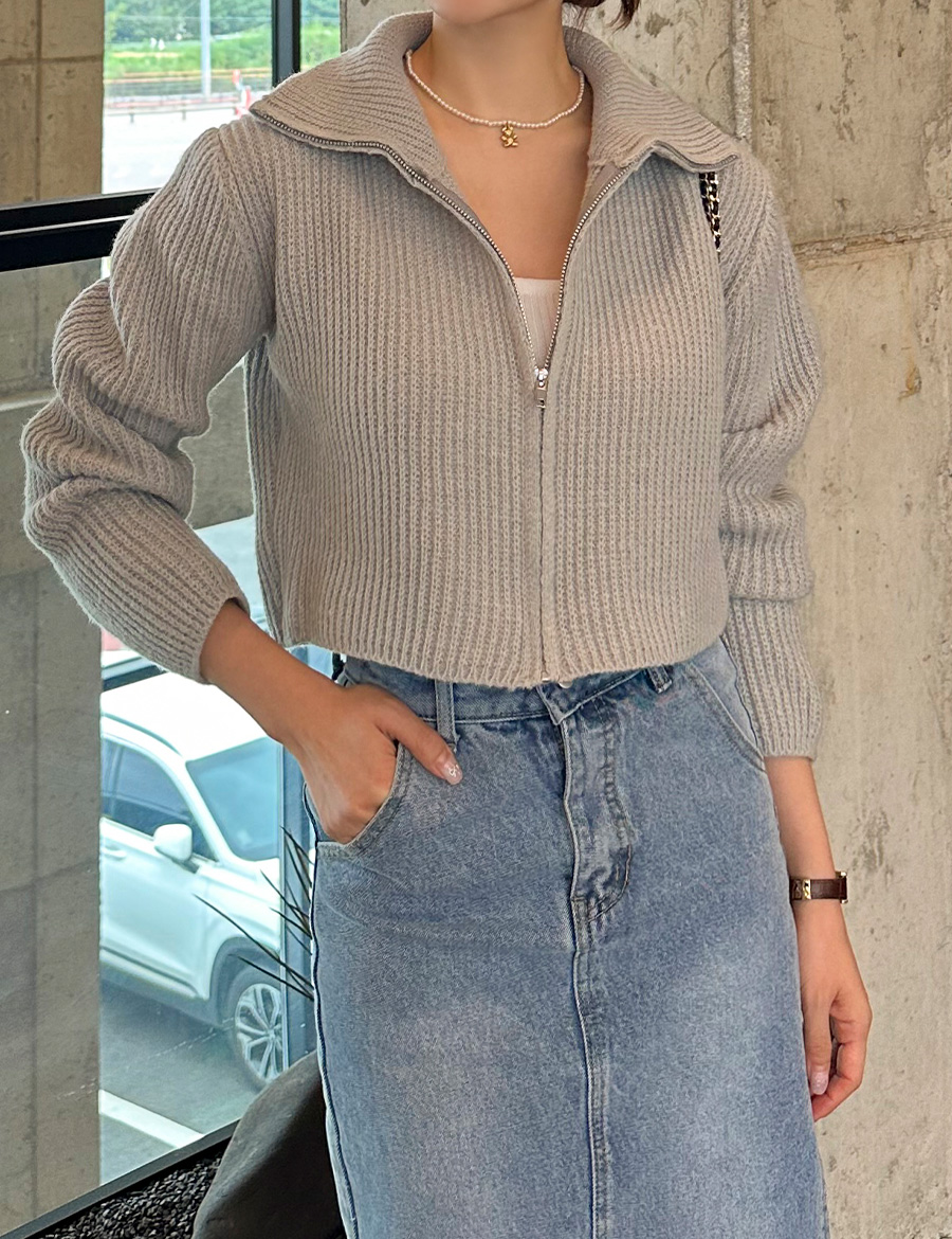 하이넥 집업 크롭 니트 가디건 자켓 봄 가을 아우터 블랙 아이보리 그레이