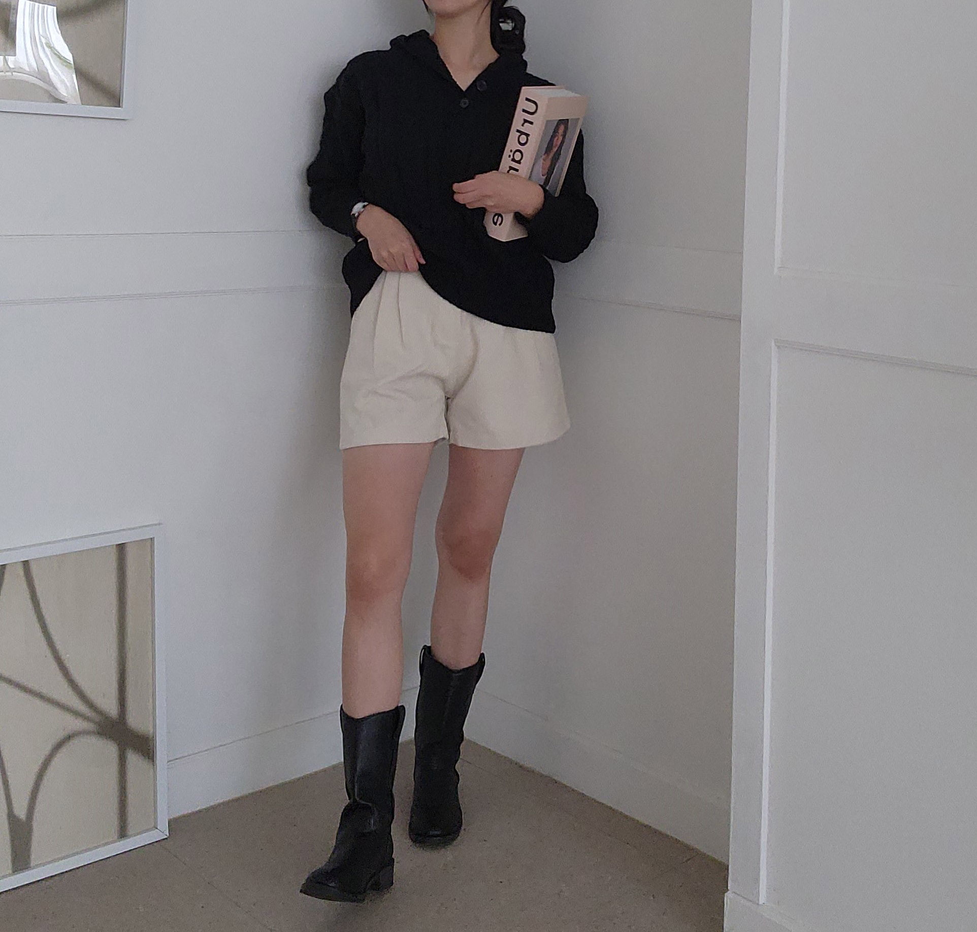 민트색상: ‘ 뮤즈 코듀로이반바지 ‘ 착용