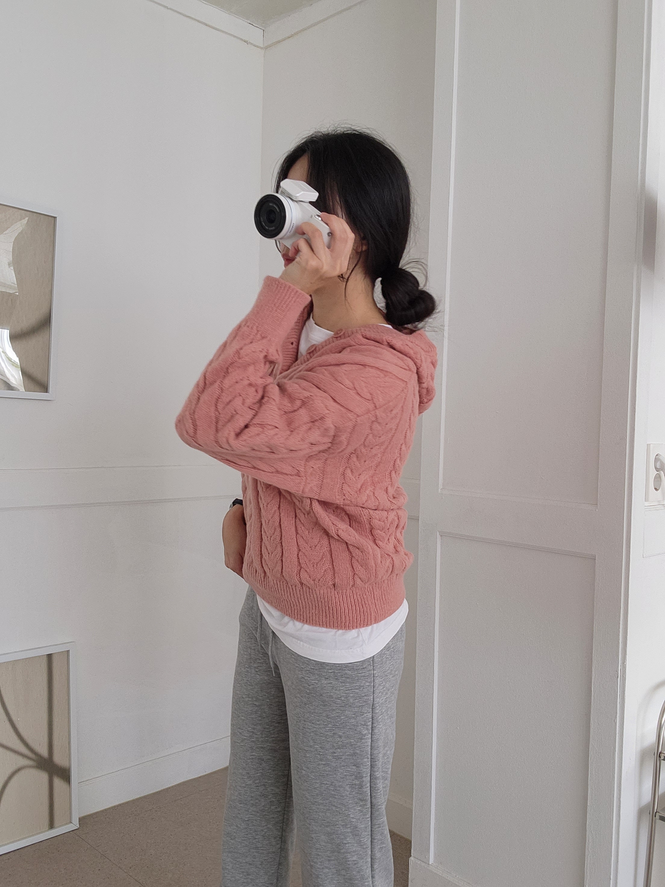 후드 긴팔 꽈배기 니트 티셔츠 케이블 봄 가을 겨울 귀여운 러블리 데이트 데일리 학생